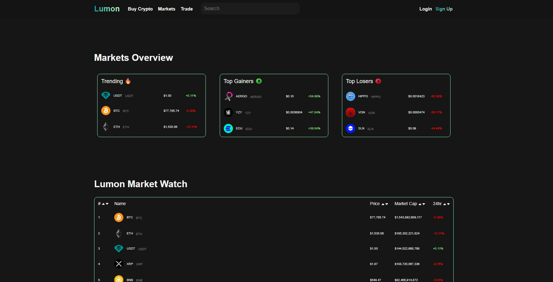 A full-stack website with a cryptocurrency dashboard using the CoinRanking API for real-time data, showcasing REST API integration and responsive design skills.