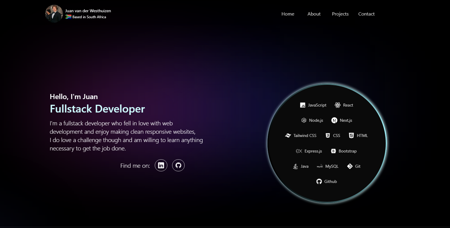 My Portfolio website, where I used React, Tailwind CSS and Next.js for a clean and responsive website that displays my skills and projects.